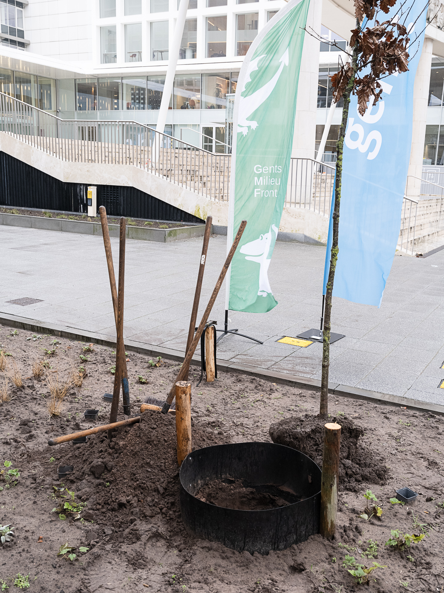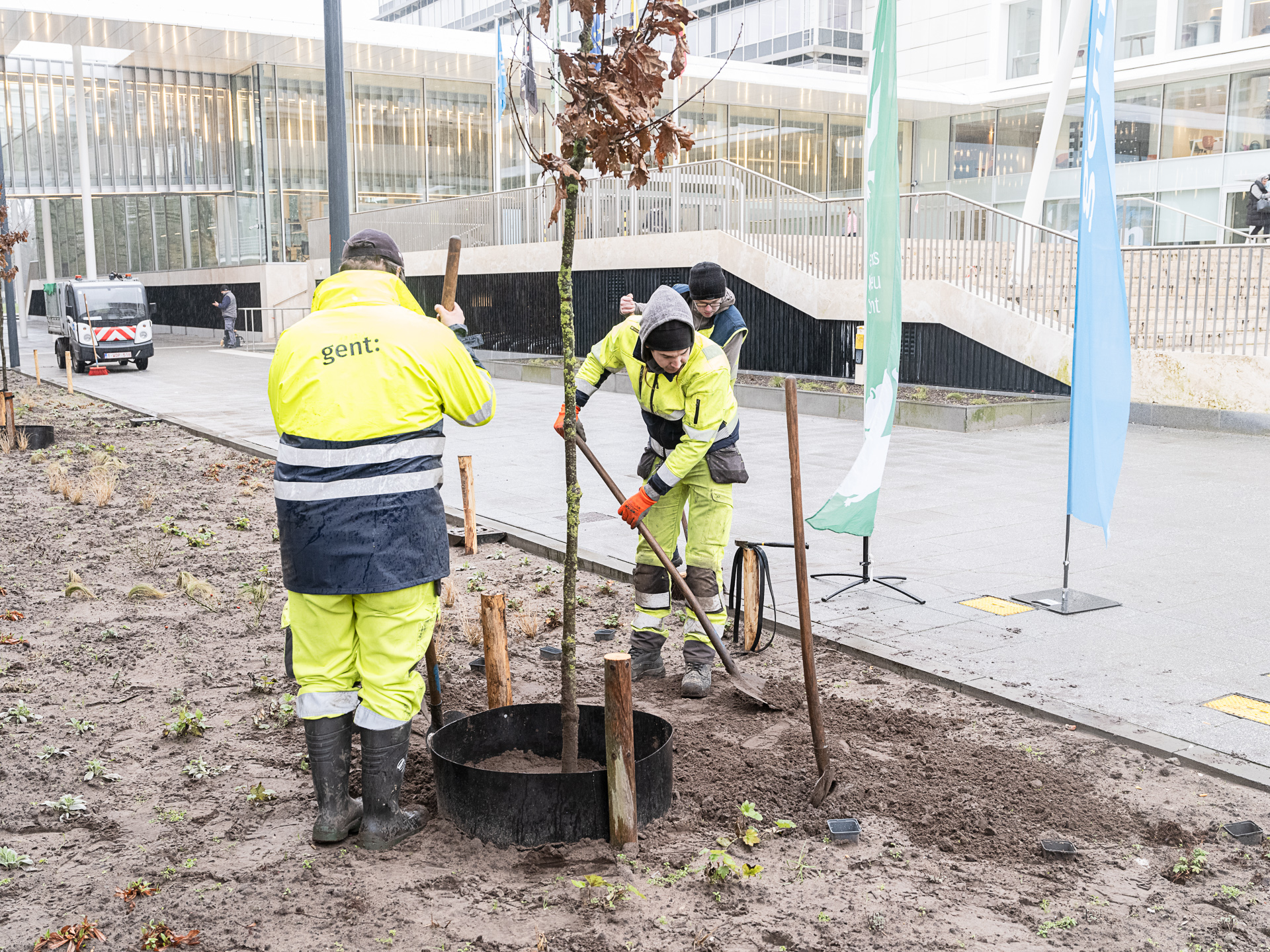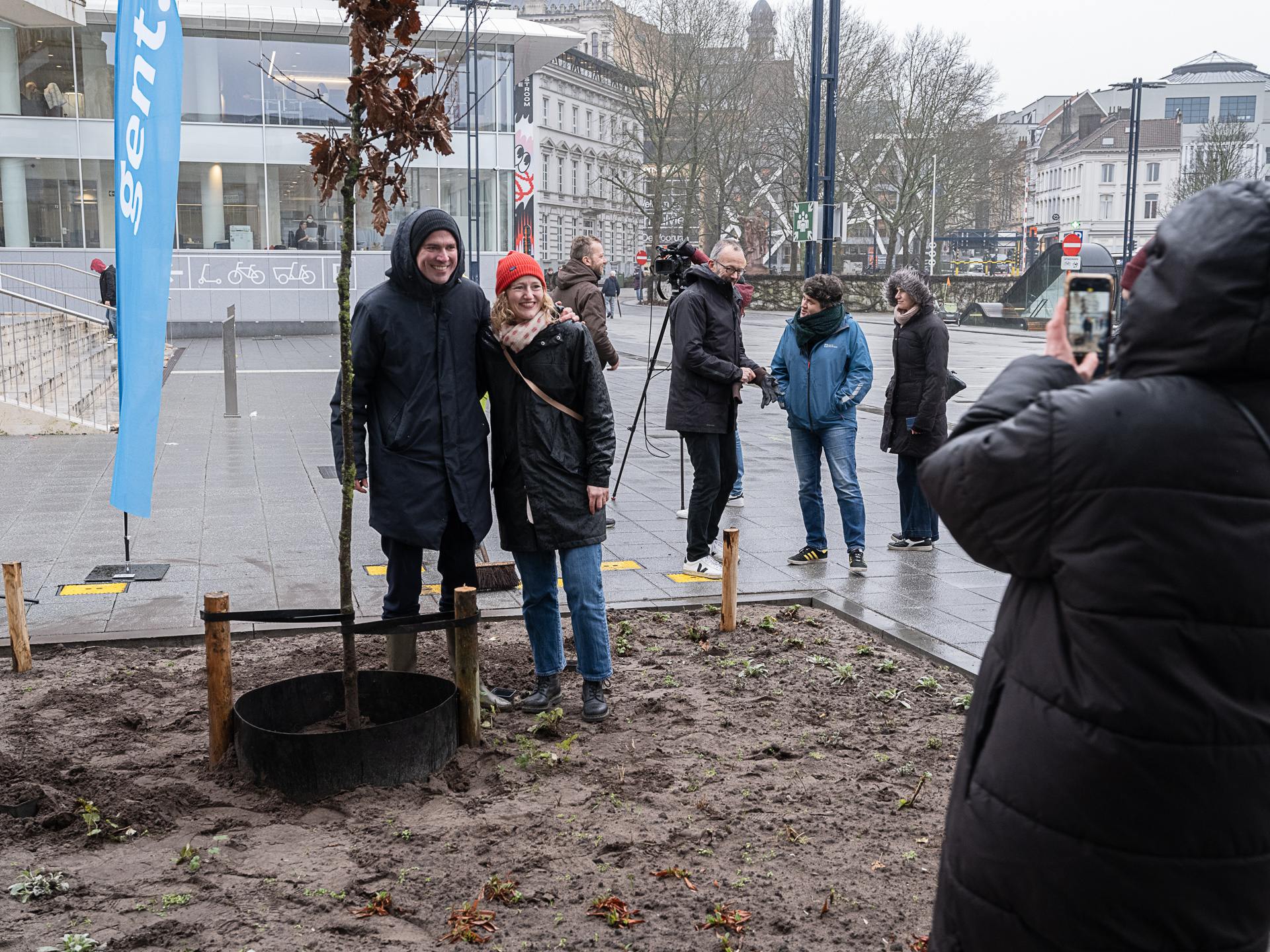 “Toekomstbomen krijgen in onze stad de ruimte om minstens 100 jaar onbezorgd te groeien. Ze worden geplant op plaatsen die door de Gentenaars zélf zijn aangebracht. Dat toont hoe betrokken onze bewoners zijn. Ze willen echt ‘de stad mee maken’, hun buurt, plein en park mee vormgeven, ook hier aan ons stadskantoor.”