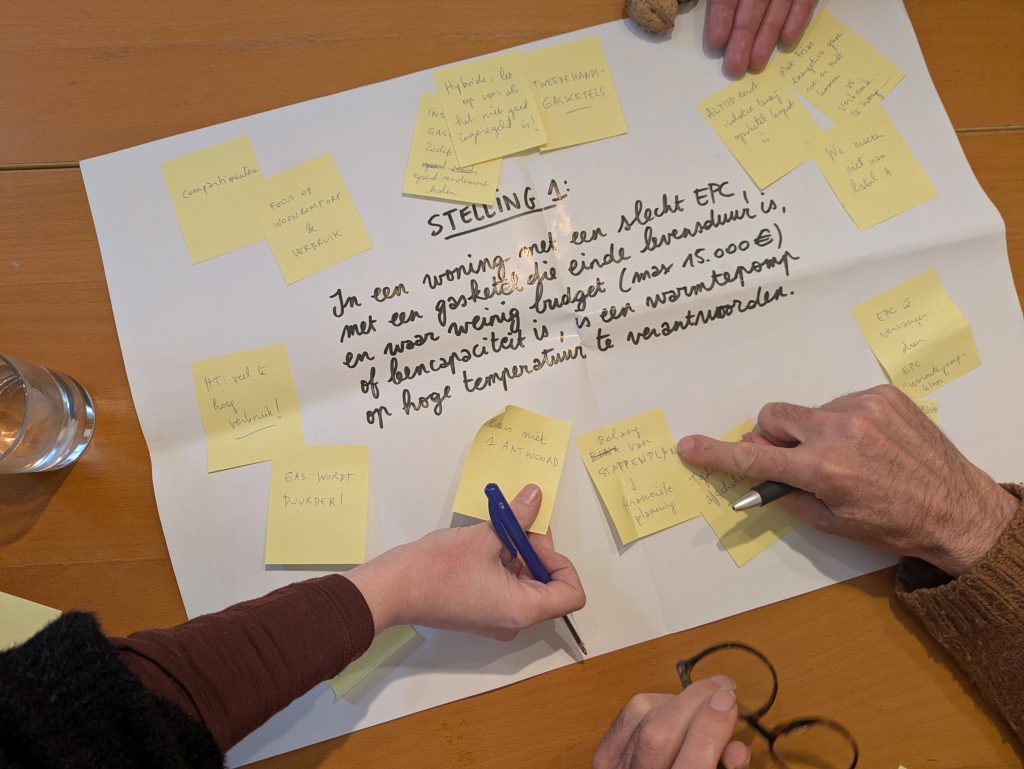 Tijdens een open raad brachten we experten en praktijkmensen samen om onze adviezen scherper te stellen. Welk advies moeten wij geven en hoe brengen we die boodschap over bij onze adviesklanten. Het uitgangspunt daarbij is dat we zo snel mogelijk iedere woning van fossiele brandstoffen willen afhalen voor verwarming. Oplossingen die het moment van deze omschakeling naar fossielvrij willen uitstellen willen we vermijden. De focus lag op drie hardnekkige thema’s: budget, stedelijke context en keuzestress. Voor elk thema leverde het debat enkele handreikingen op, maar ook veel stof tot verder nadenken.