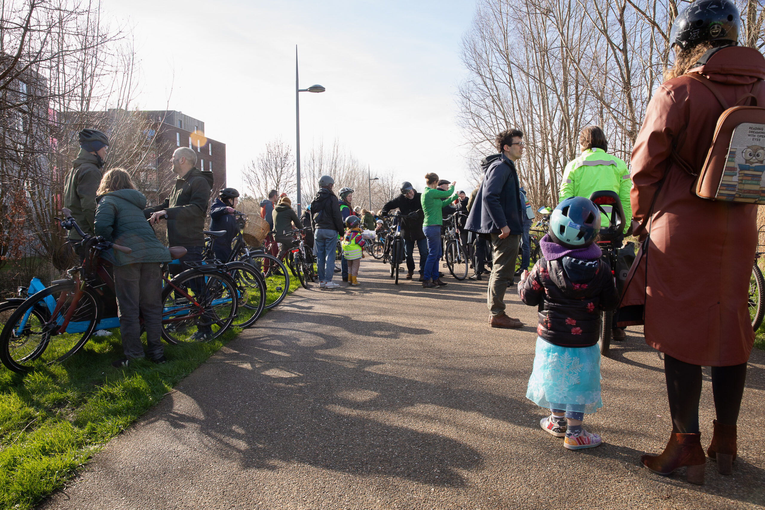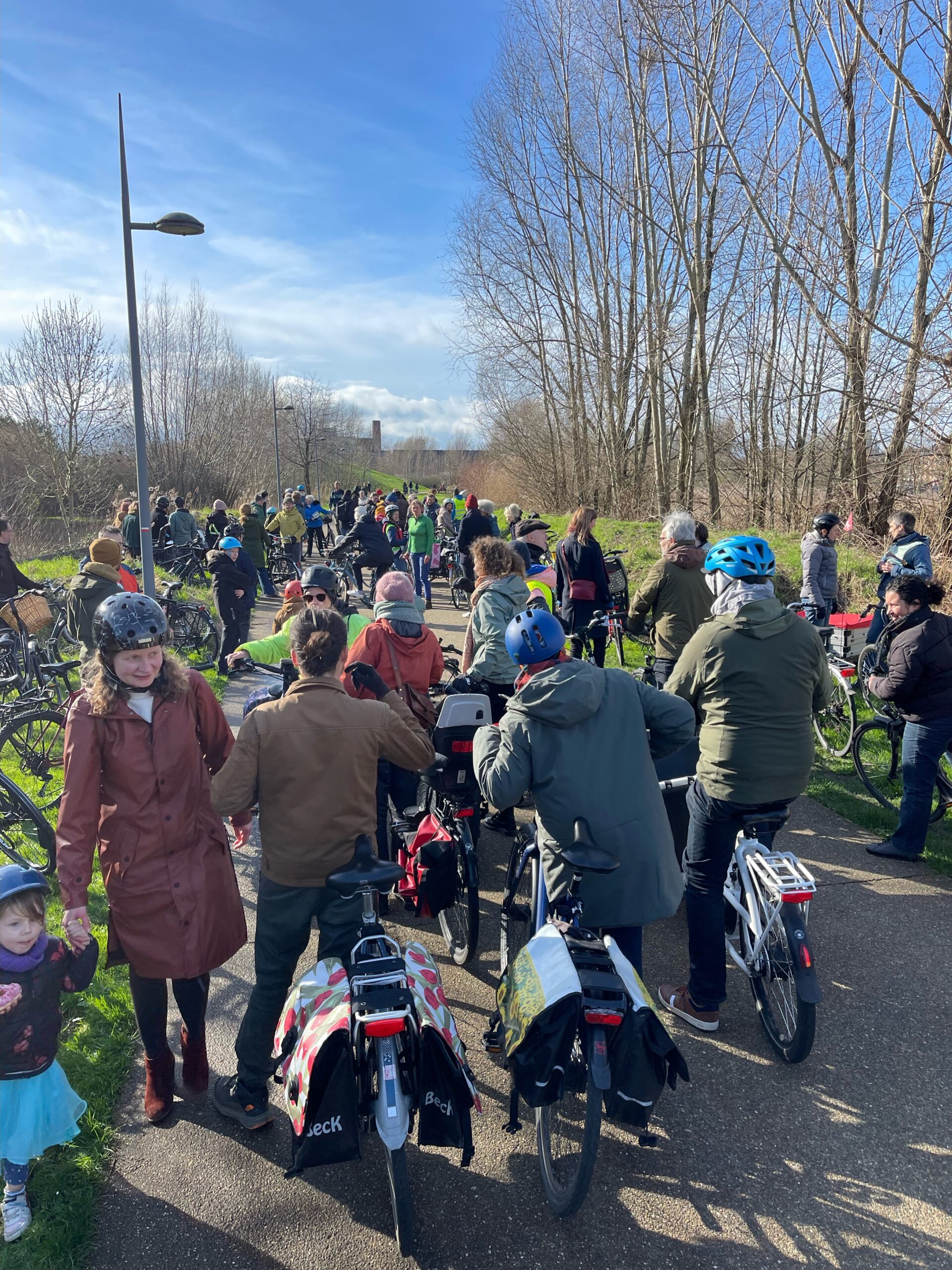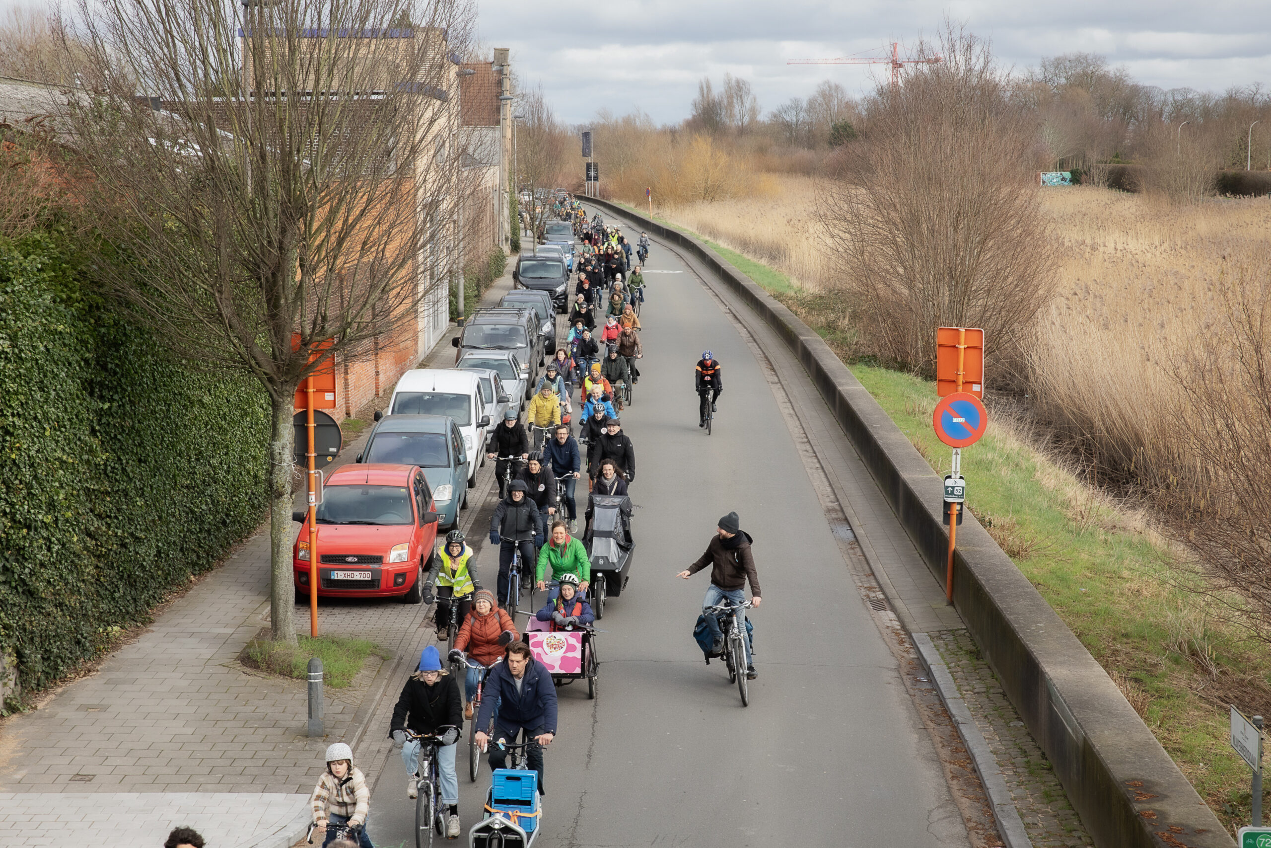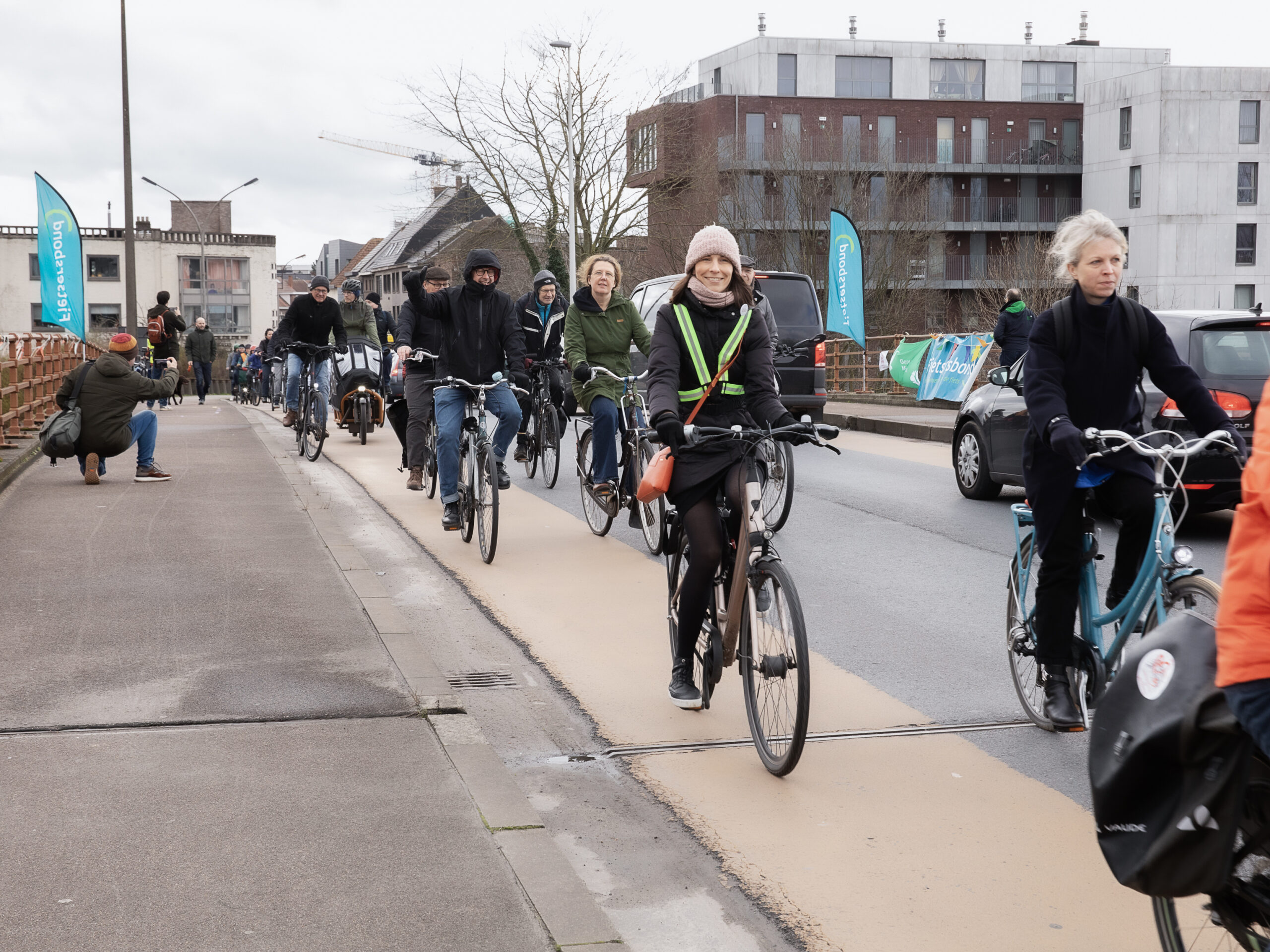 Op zaterdag 24 februari verzamelden 120 fietsers voor de fietsactie aan de Gentbruggebrug. Daar circuleerden ze met veel gerinkel op, onder en rond de brug voor een snelle invoering van het wijkmobiliteitsplan. Dat plan werd in 2021 al goedgekeurd, maar werd nog altijd niet ingevoerd. Nochtans bewijst deze actie dat de veiligheid van fietsers en voetgangers gedragen wordt door heel wat organisaties en buurtbewoners.