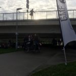 We stonden met ruim 20 enthousiaste applaudisseurs op de fietsersbrug tussen de Visserij en het Keizerspark.