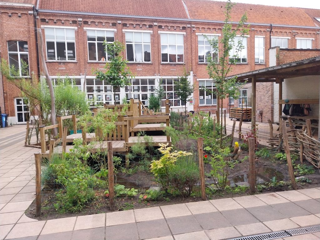 In de zomer van 2023 heeft de speelplaats van school Balans een metamorfose ondergaan. De volledig verharde speelplaats is opengebroken. In de plaats kwam een groenzone en een wadi. Bovenop de groenzone kwam een speeltoestel. Het water afkomstig van (een deel van) het dak in de Dierickxstraat komt nu in de wadi. Daarnaast kwamen er ook geveltuinen en constructies om planten te laten op groeien.