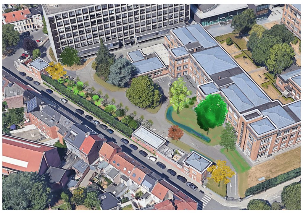 2. UGent campus Coupure: grote zone ontharden, wadi integreren en bomen planten